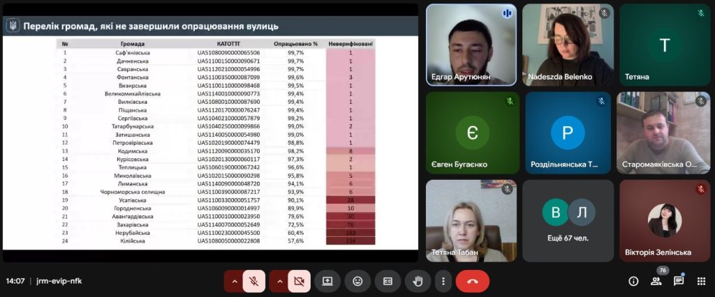 Також, було наголошено на необхідності прискорення роботи з верифікації адресної інформації для наповнення ЄДРА: